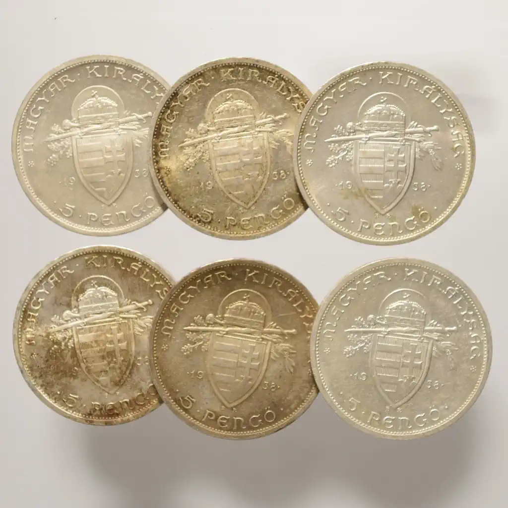 Megnevezés: 1938 Szent István ezüst 5 Pengő LOT (6 db)
