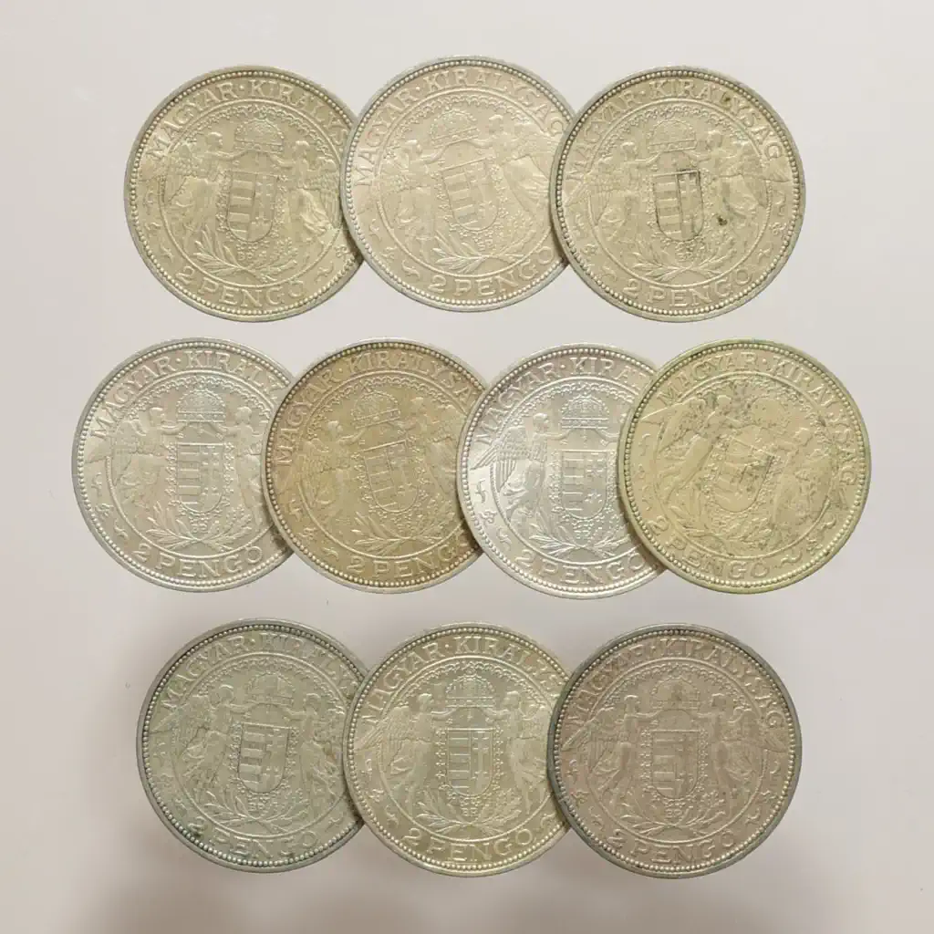 Megnevezés: Horthy korszak ezüst 2 Pengő LOT (10 db)