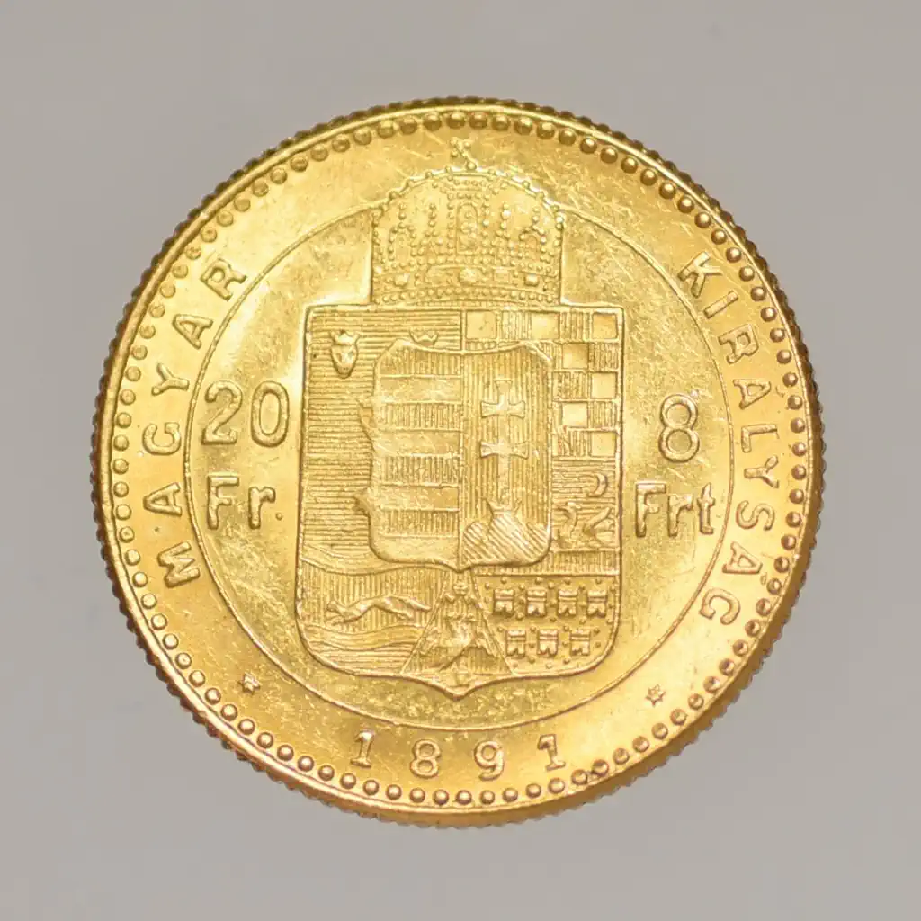 Megnevezés: 1891 Ferenc József 8 forint-20 francs