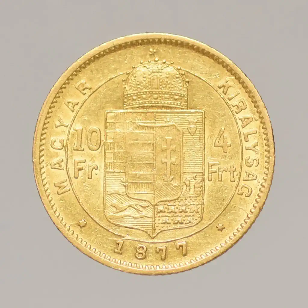Megnevezés: 1877 Ferenc József 4 forint-10 francs