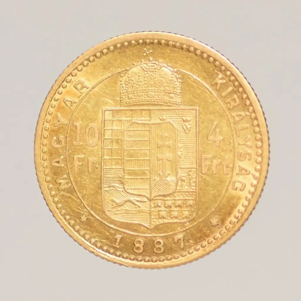 Megnevezés: 1887 Ferenc József 4 forint-10 francs