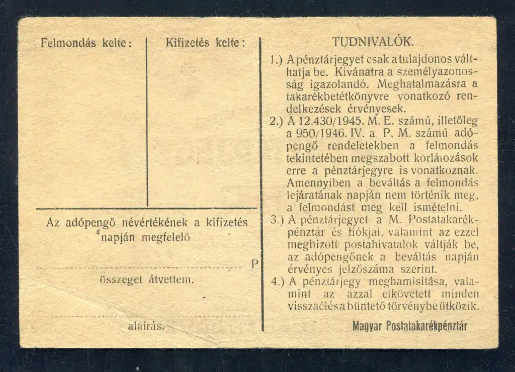 Megnevezés: 1946 10000 adópengő pénztárjegy