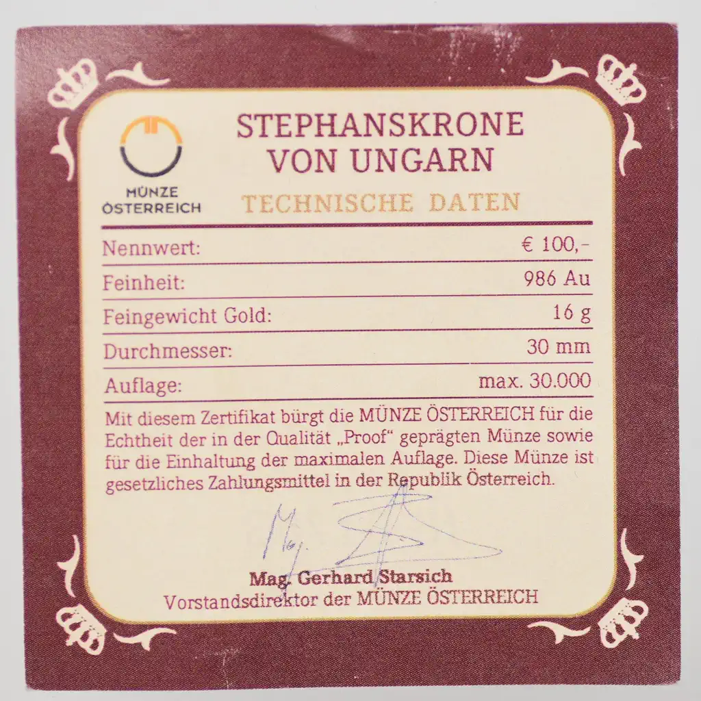 Megnevezés: 2010 Austria 100 EUR Szent István koronája