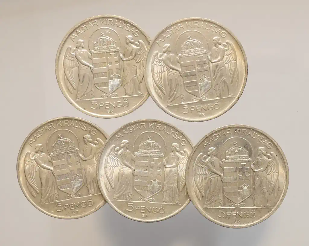 Megnevezés: 1939 Horthy ezüst 5 pengő csomag ( 5 db)