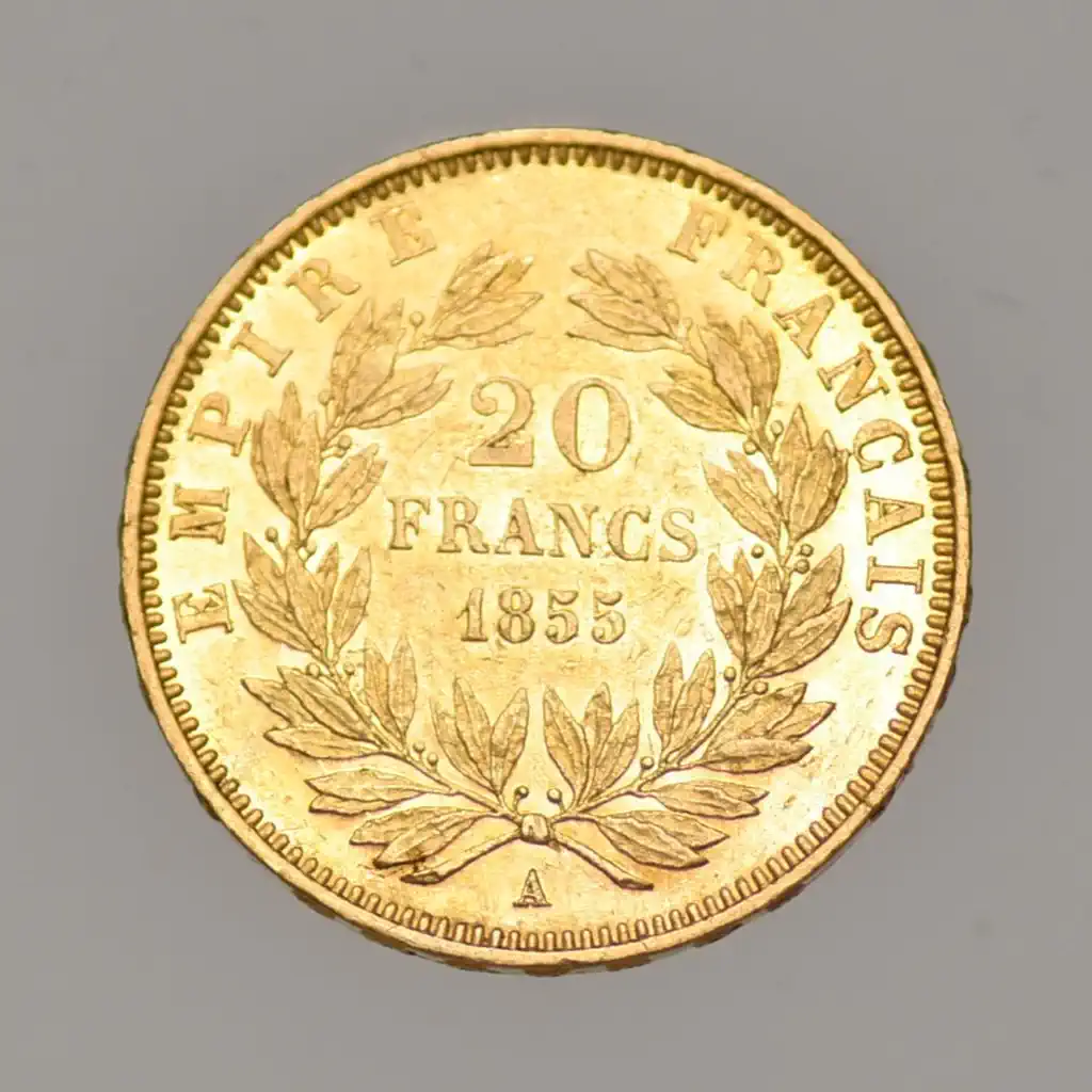 Megnevezés: 1855 Francia o. III. Napoleon 20 francs